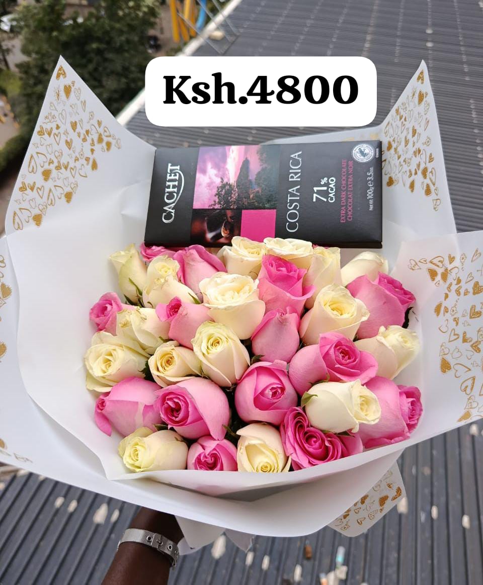 40 mixed roses and a cachet chocolate.