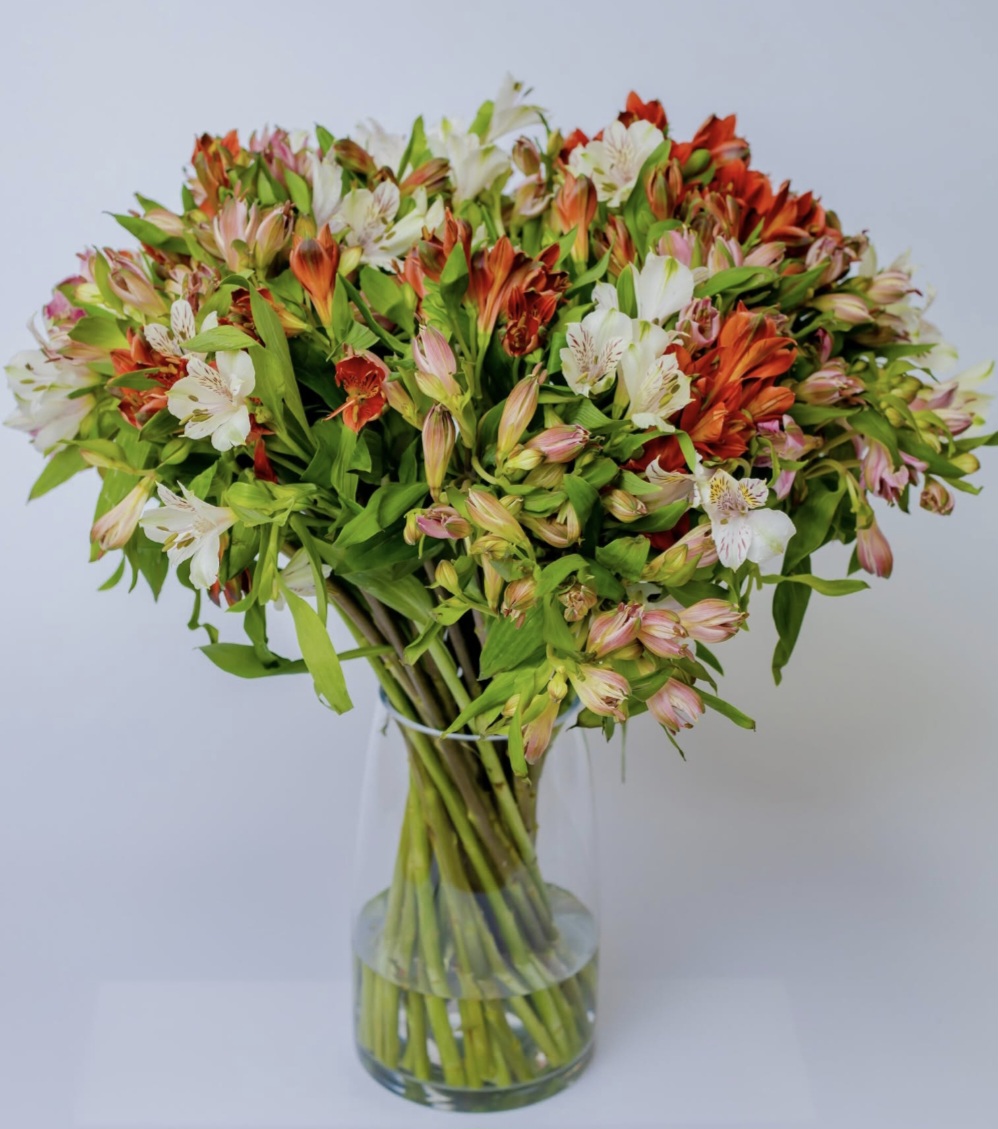 Colourful alstromeria fresh flowers in a vase.