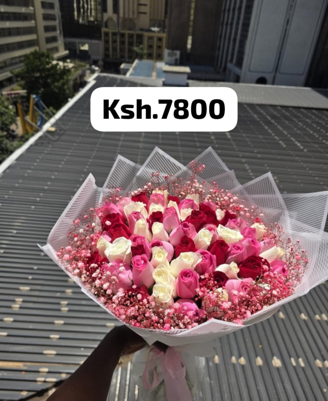 Fresh Flowers bouquet. Mixed flowers with pink baby breaths