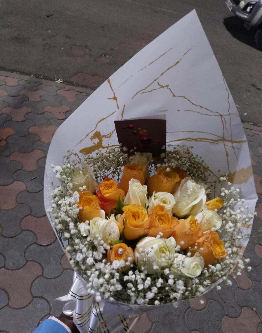 Fresh 20 mixed two colour roses with baby breaths.